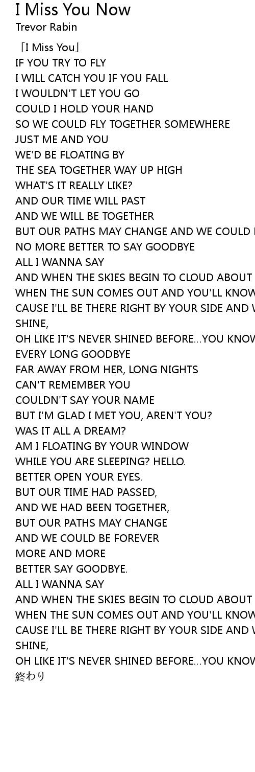 | OH LIKE IT' S NEVER SHINED BEFORE YOU KNOW I MISS YOU | |
