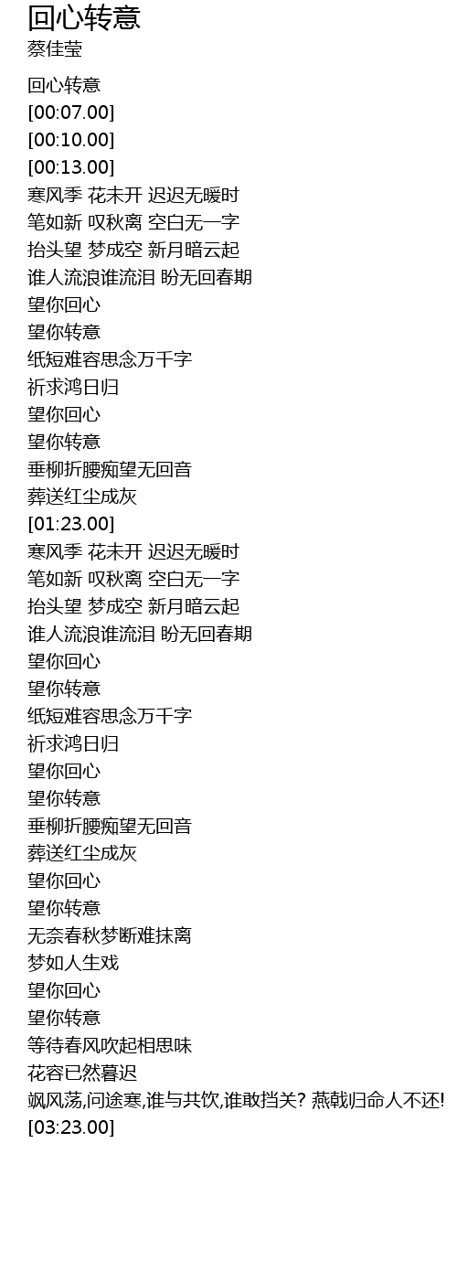 | [00:00.00] | 回心转意 |