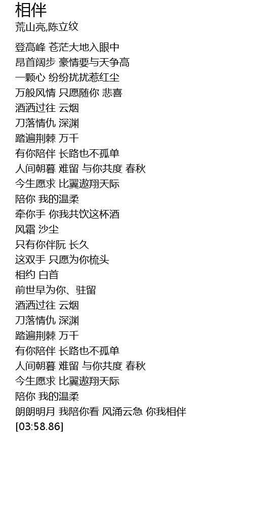 | [03:15.86] | 有你陪伴 长路也不孤单 |