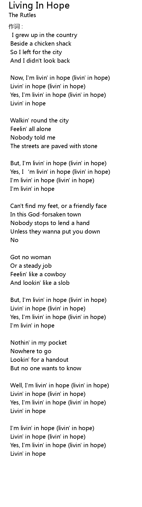 | Yes, I‘m livin' in hope (livin' in hope) | |