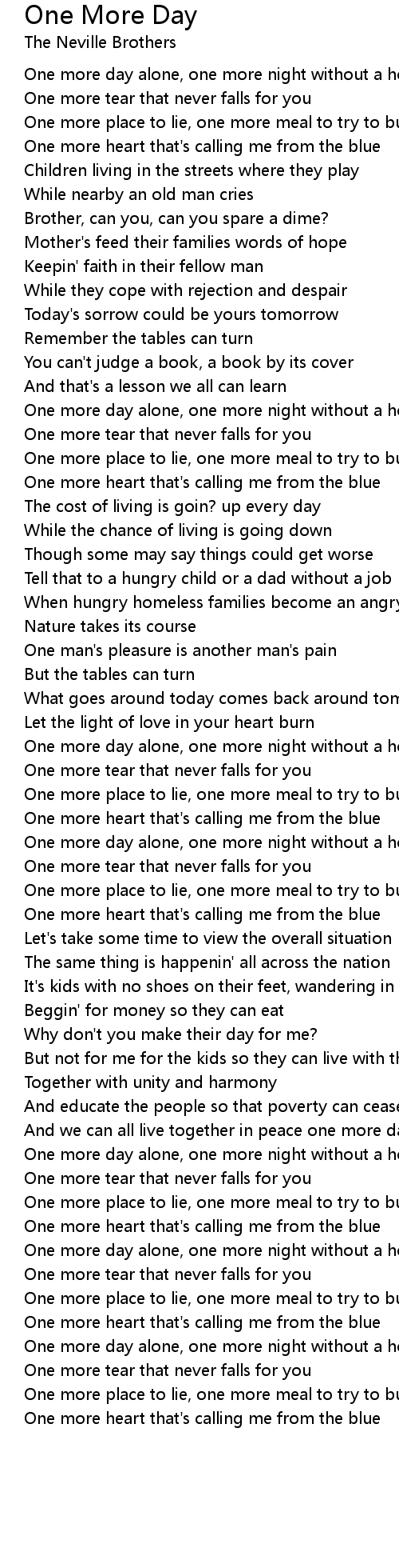 One more day alone, one more night without a home |
