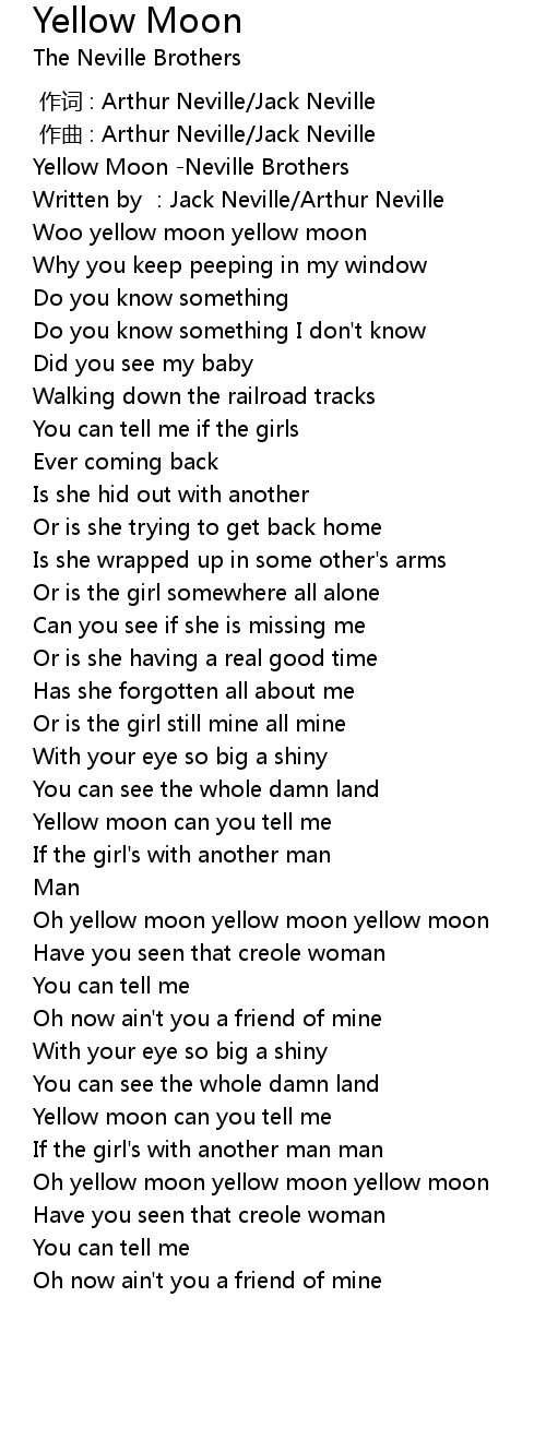 | [00:00.00] | Yellow Moon Neville Brothers |