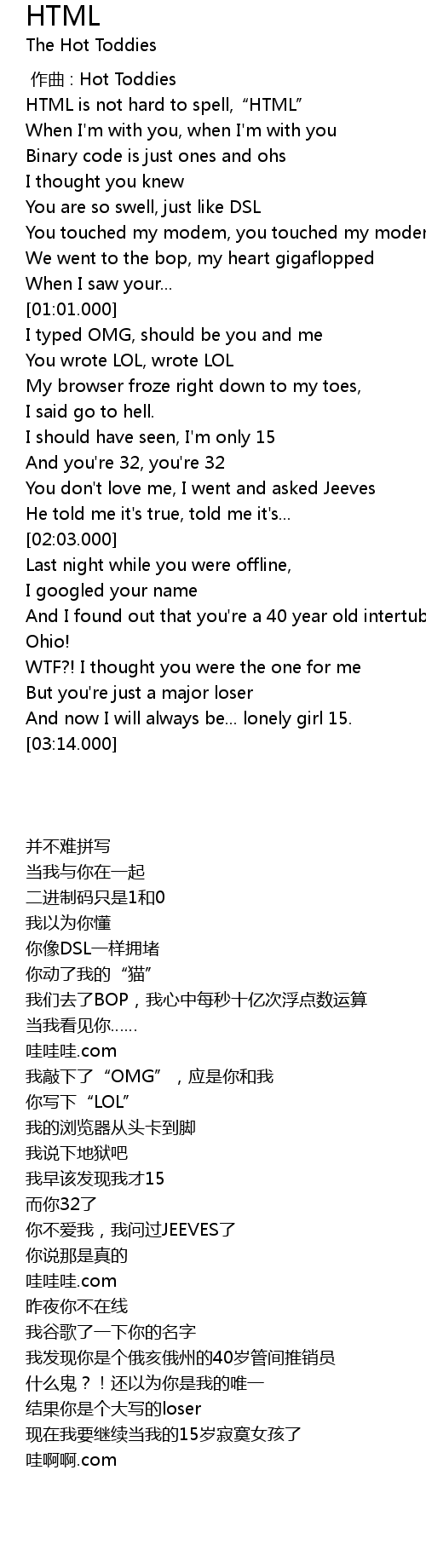 | [00:31.000] | HTML is not hard to spell,“HTML” |