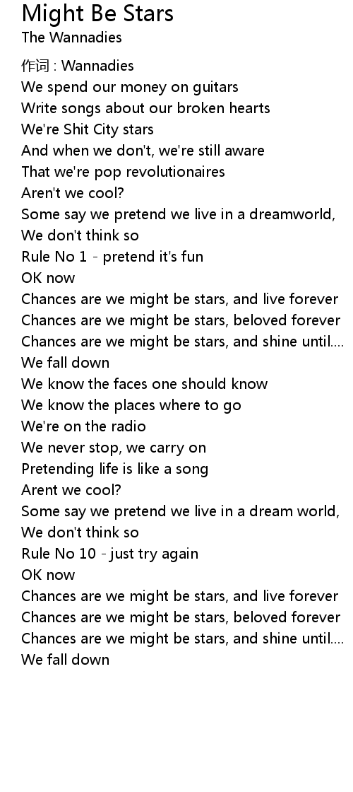 | Chances are we might be stars, and shine until.... | |