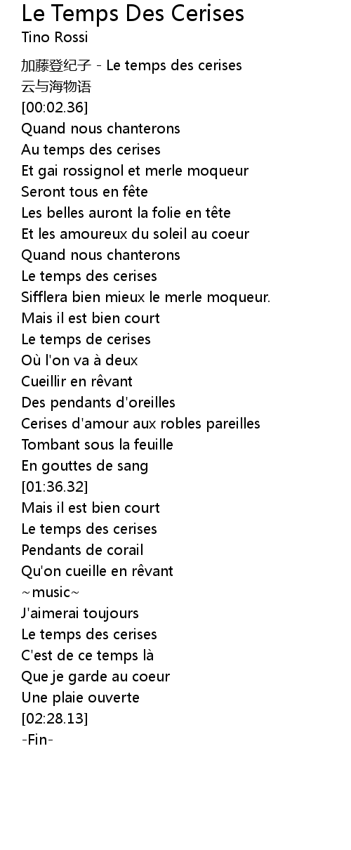 | [02:07.36] | Le temps des cerises |