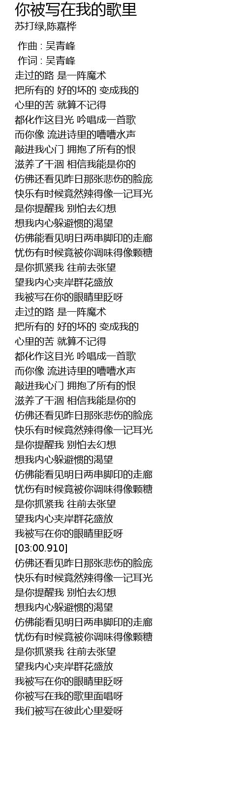 | [04:02.200] | 你被写在我的歌里面唱呀 |
