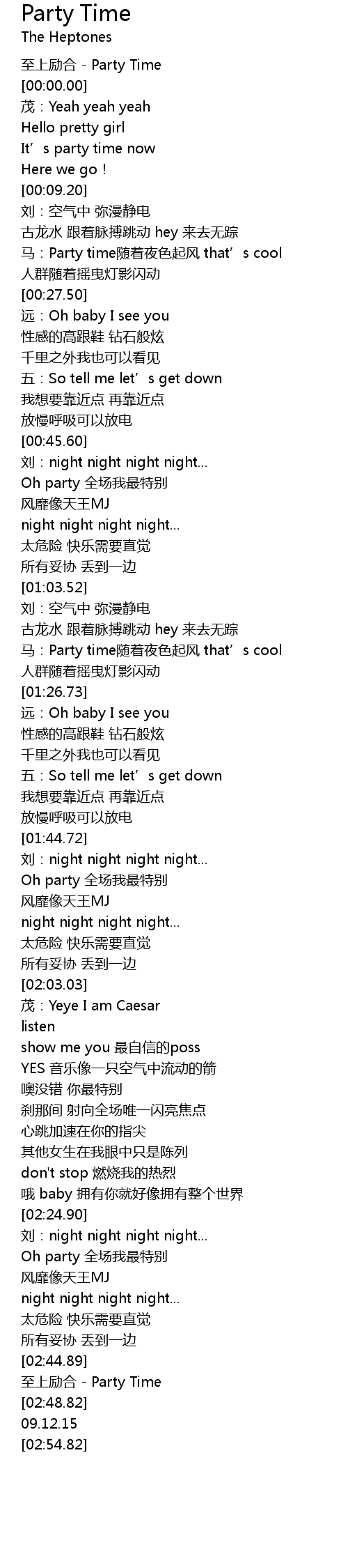 | [02:46.82] | zhì shàng lì hé Party Time |