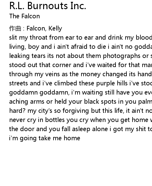 | slit my throat from ear to ear and drink my blood like wine i ain' t afraid of living, boy and i ain' t afraid to die i ain' t no goddamn vampire and i ain' t leaking tears its not about them photographs or shouting out them beers i' ve stood out that corner and i' ve waited for that man i' ve felt that beat pump through my veins as the money changed its hands i' ve walked these lonely city streets and i' ve climbed these purple hills i' ve stood itching and waiting goddamn goddamn, i' m waiting still have you ever felt the sunrise in twitching, aching arms or held your black spots in you palm and squeezed and loved them hard? my city' s so forgiving but this life, it ain' t no living take me home you never cry in bottles you cry when you get home when you watch your life walk out the door and you fall asleep alone i got my shit together but lord knows where i' m going take me home |