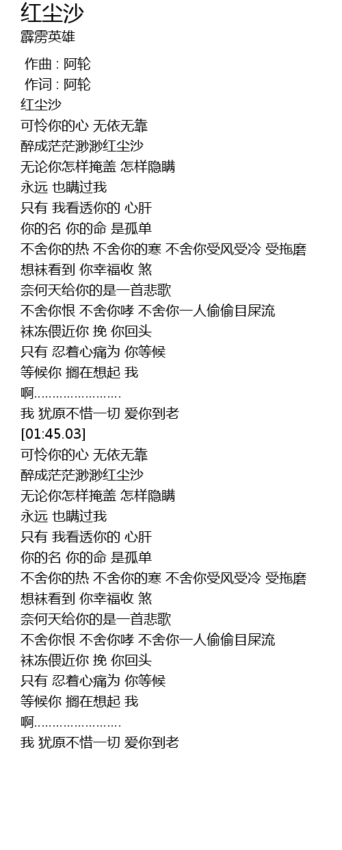 | [02:01.03] | 醉成茫茫渺渺红尘沙 |