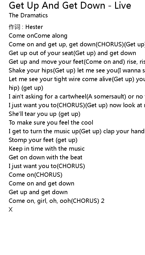 | Come on and get up, get down(CHORUS)(Get up) and get down | |