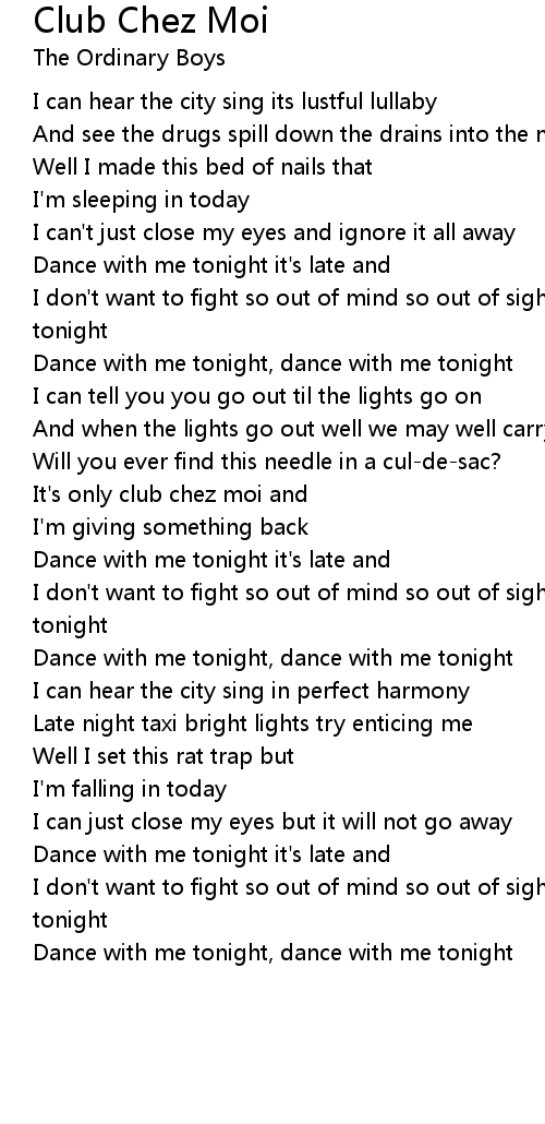 I don't want to fight so out of mind so out of sight so what so dance with me tonight |