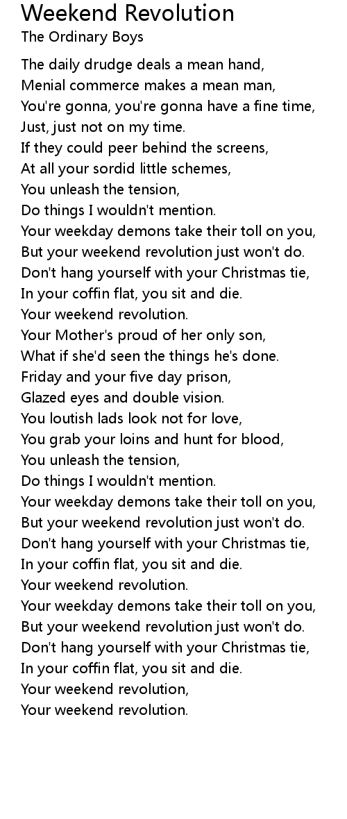 Your weekend revolution, |