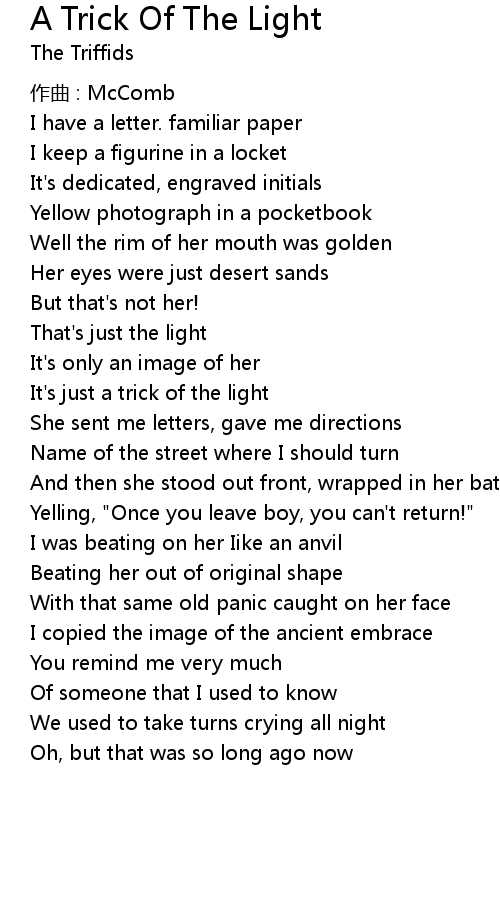| Song | A Trick Of The Light |