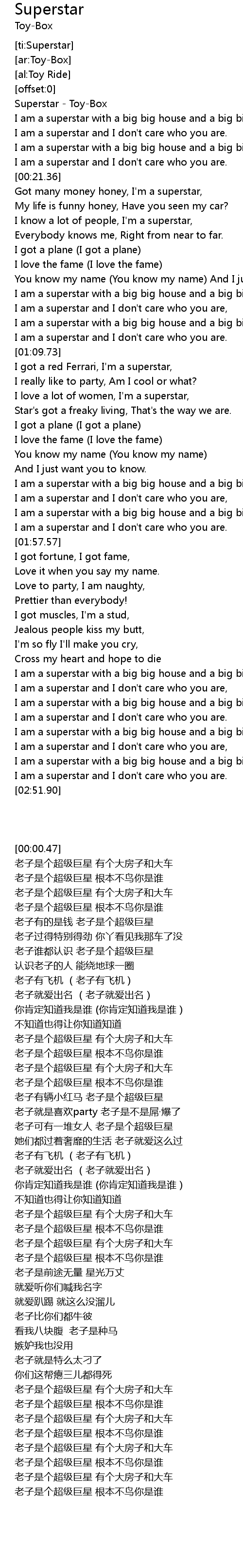 | [00:00.47] | Superstar - Toy-Box |