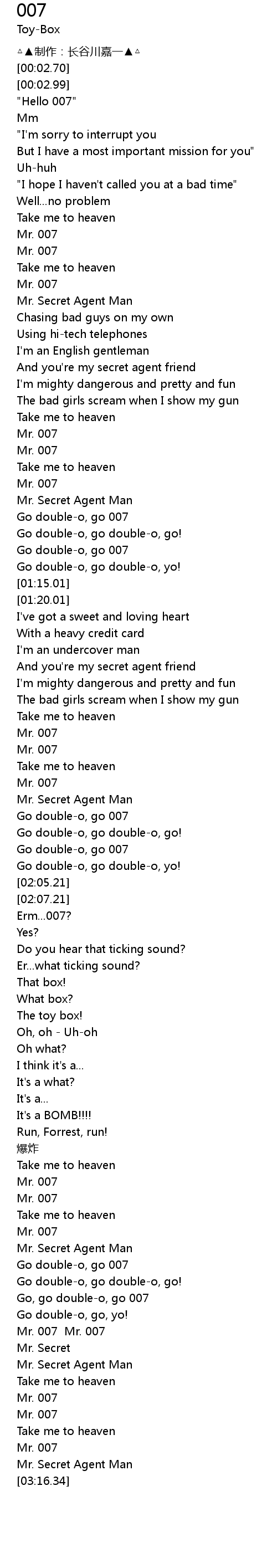 | [02:52.98] | Mr. 007 Mr. 007 |
