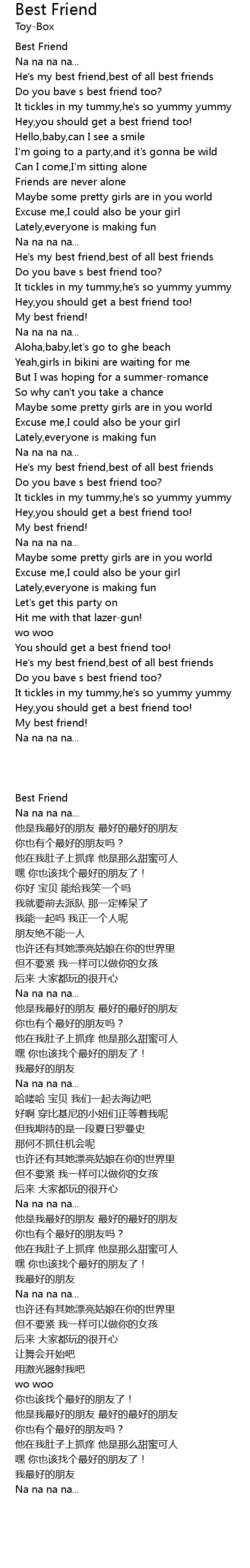 | [00:19.700] | Do you bave s best friend too? |