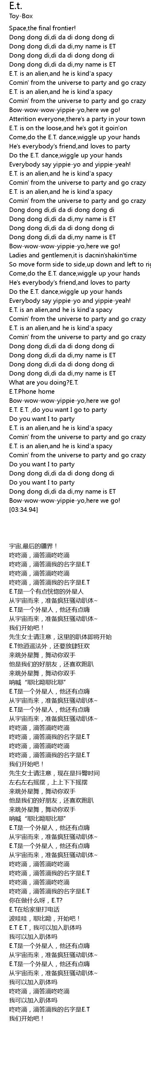 | [02:58.29] | E.T. E.T. ,do you want I go to party |