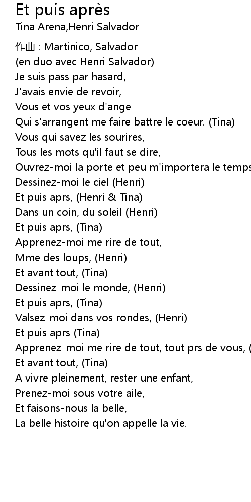 | Qui s' arrangent me faire battre le coeur. Tina | |