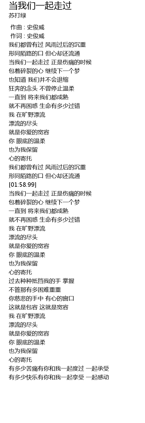 | [00:38.22] | 当我们一起走过 正是伤痛的时候 |