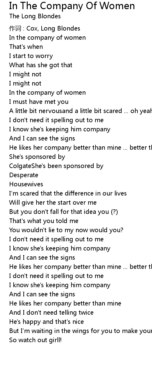 | Song | In The Company Of Women |