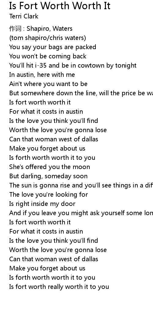 | Song | Is Fort Worth Worth It |