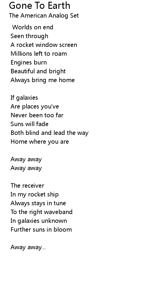| Song | Gone To Earth |