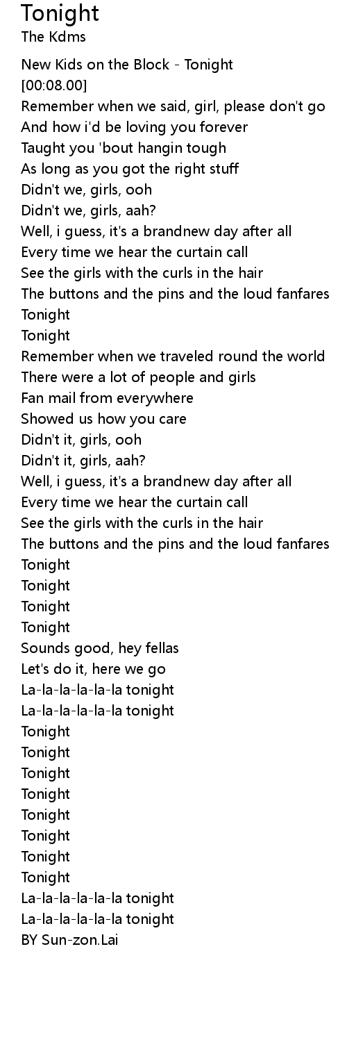 [00:05.00] New Kids on the Block - Tonight