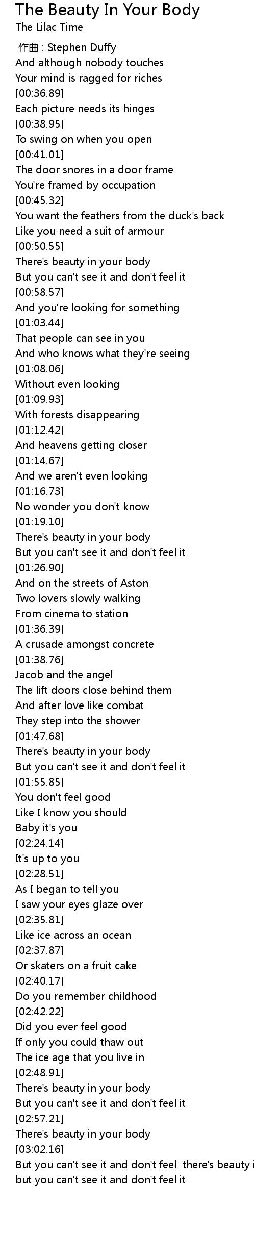 | [02:59.83] | There' s beauty in your body |