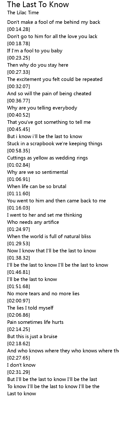 To know I'll be the last to know I'll be the |