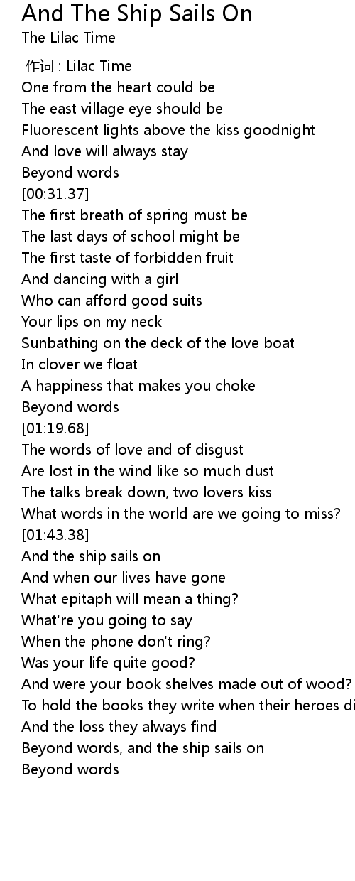 | [01:01.18] | Sunbathing on the deck of the love boat |