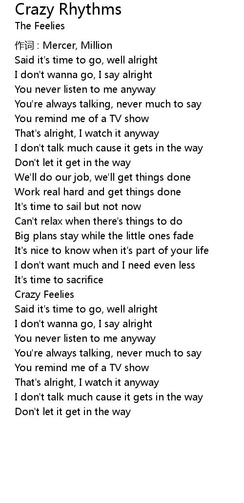 | Song | Crazy Rhythms |