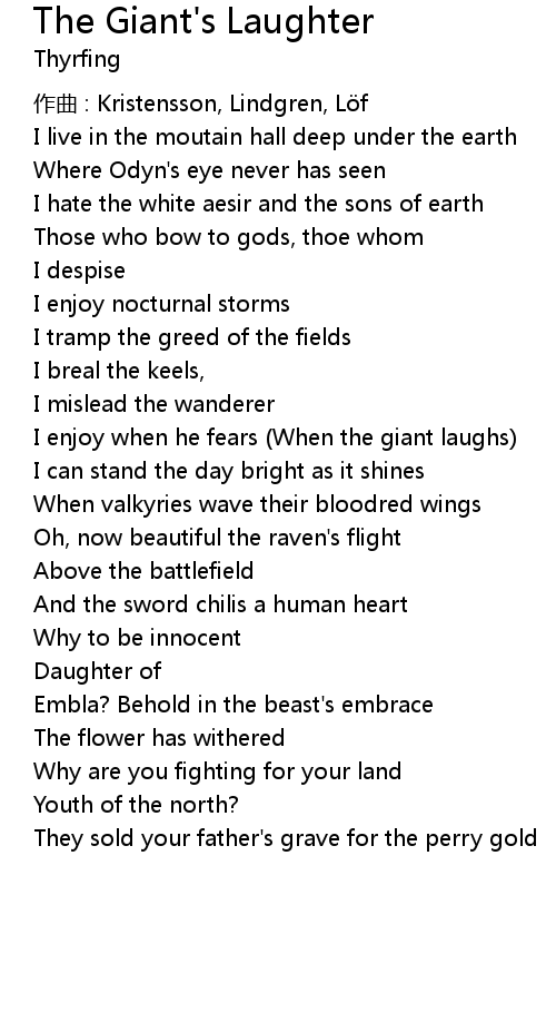 | Song | The Giant's Laughter |