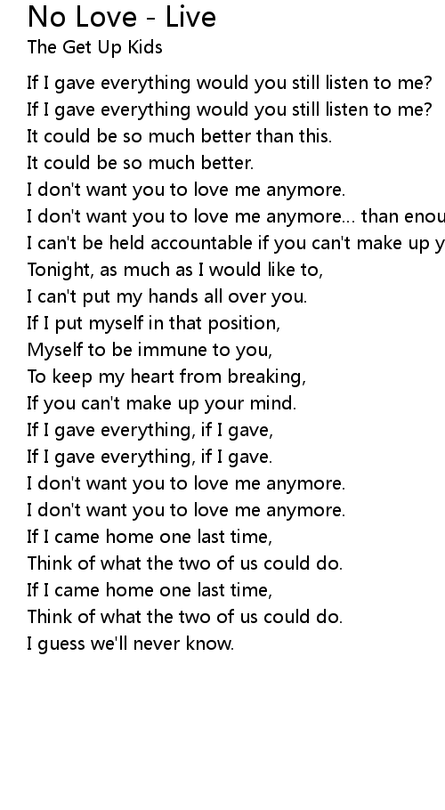 | I don' t want you to love me anymore. | |