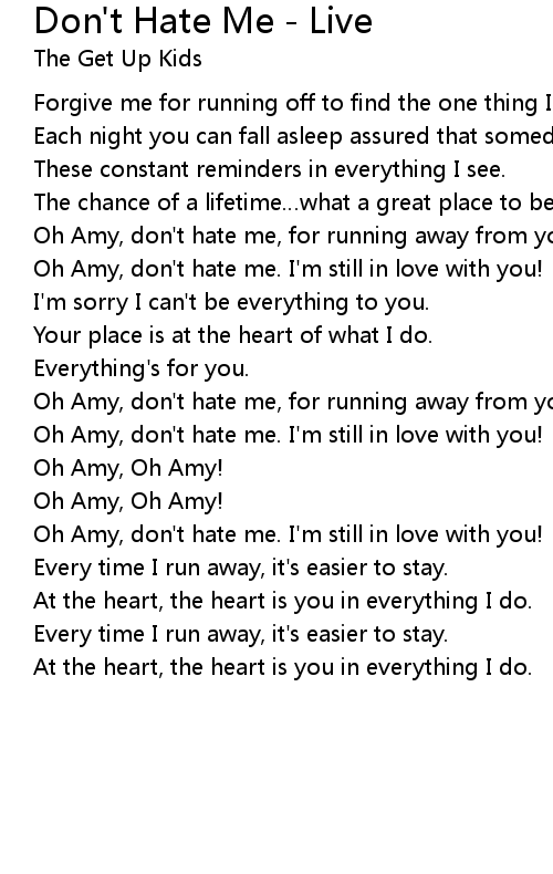 | Oh Amy, don' t hate me, for running away from you. | |