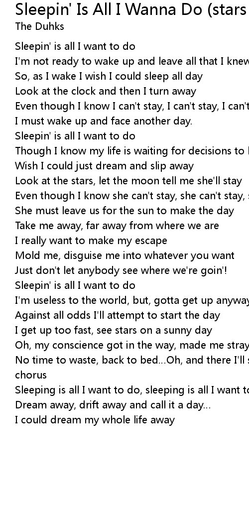 | Sleeping is all I want to do, sleeping is all I want to do | |