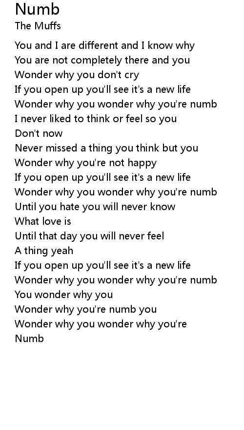 Wonder why you're numb you |