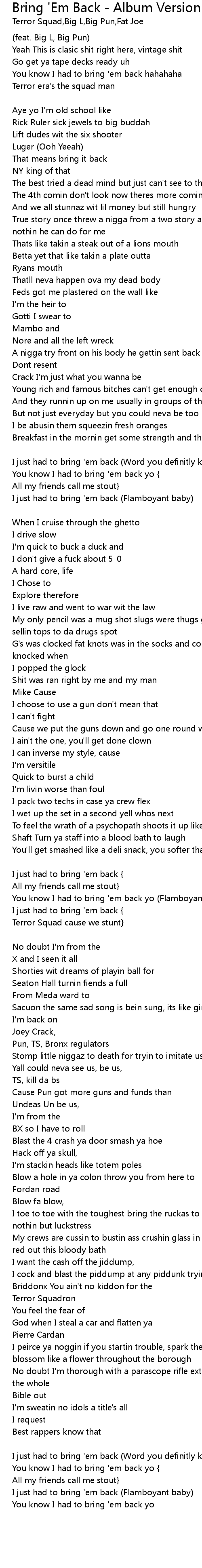 You know I had to bring 'em back yo [Verse 3: Big Pun] |