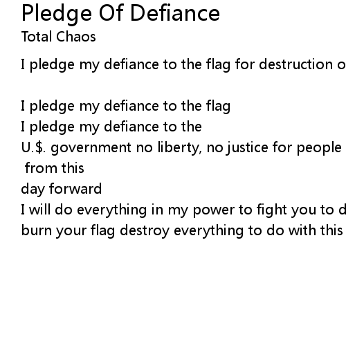 I pledge my defiance to the flag for destruction of the native american culture and to the republic from which it stands one nation under god heads [Chorus:] |