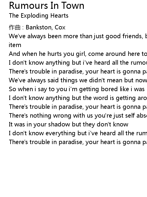 | I don' t know everything but i' ve heard all the rumours in town, | |