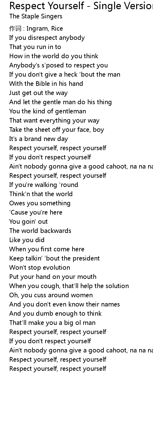 | Respect yourself, respect yourself |