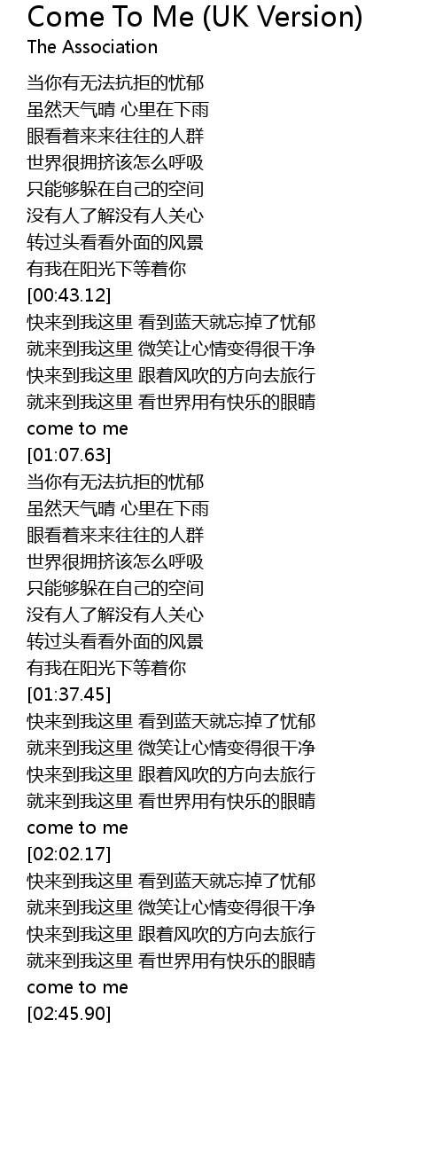 | [02:42.77] | come to me |