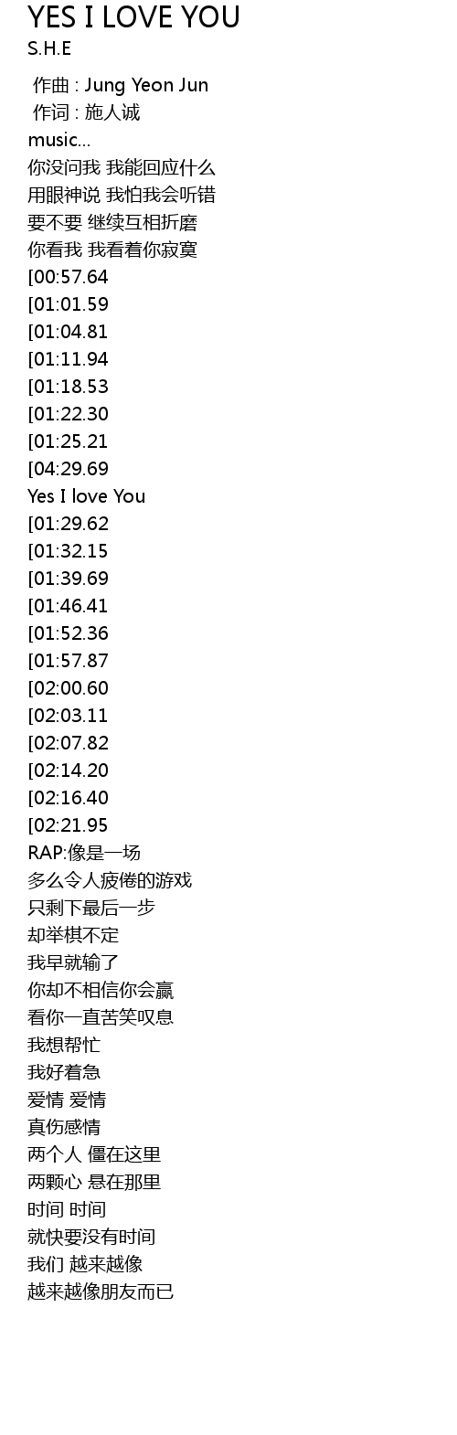 | [03:47.16][01:52.36] | Love you Love you Yes I love you |