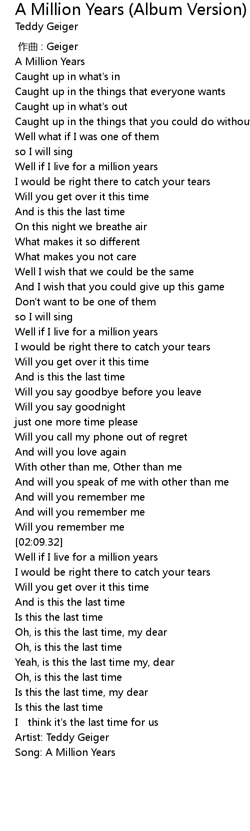 | [02:50.85] | Yeah, is this the last time my, dear |