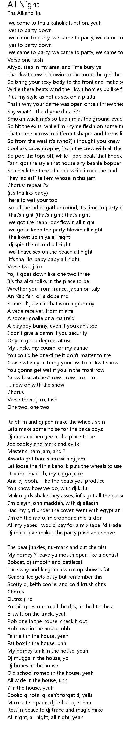 | 2 repeat jro we gotta keep the party blowin all night | |