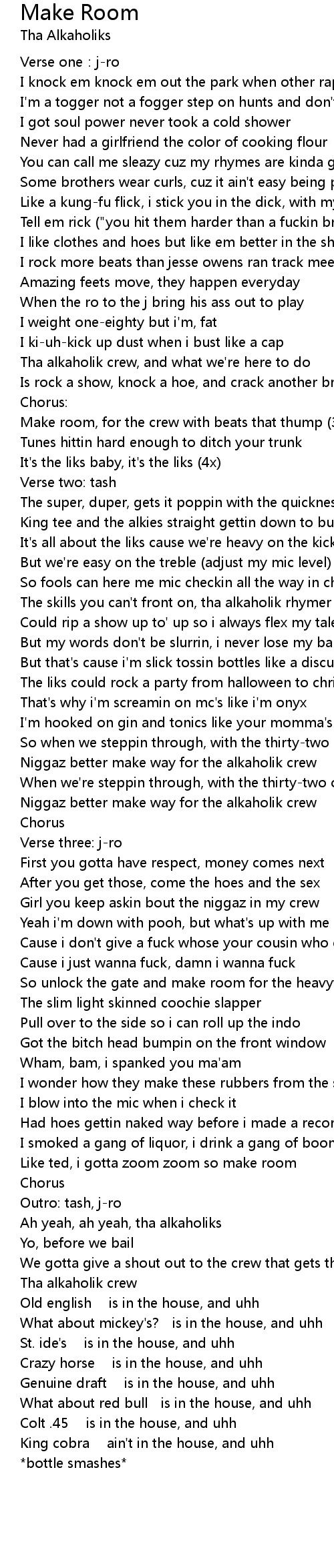 | Make room, for the crew with beats that thump (3x) | |