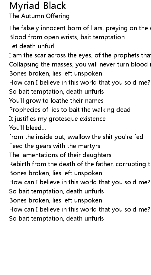 So bait temptation, death unfurls |