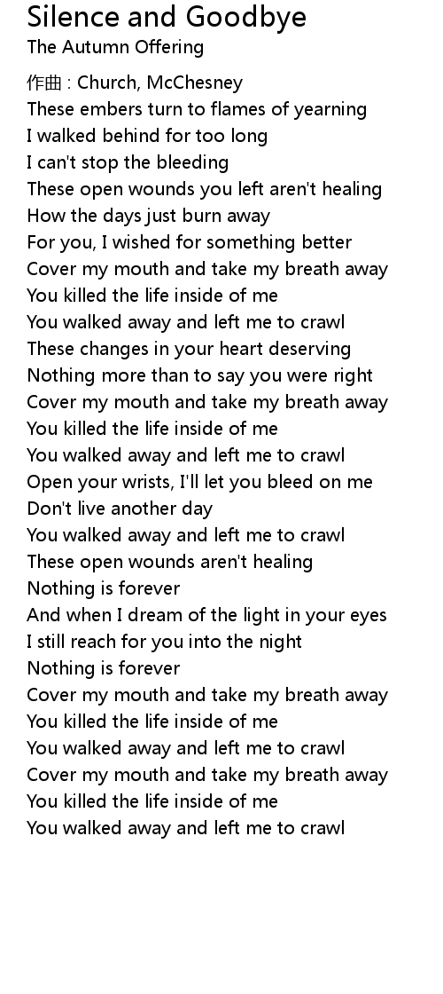 | Song | Silence and Goodbye |