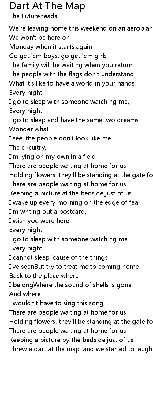 Threw a dart at the map, and we started to laugh (x6) |