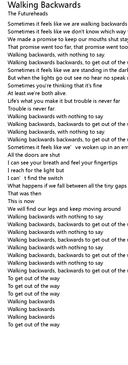 | Walking backwards with nothing to say | |