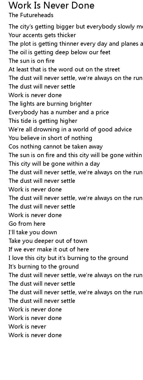 Work is never done |